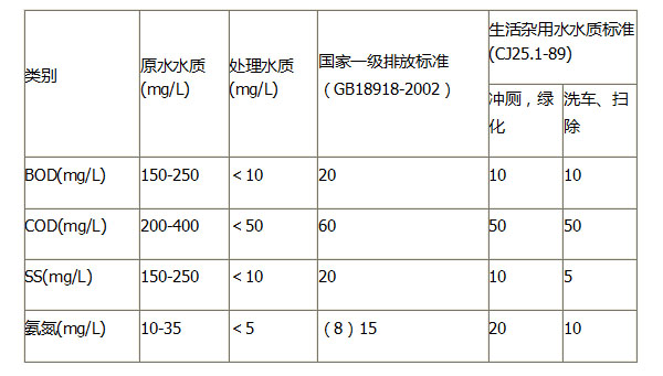 四、WWS-AO生活污水處理設備出水水質(僅供參考):