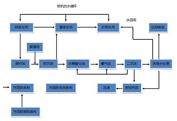 針對造紙污水特點,處理工藝采用“水解酸化+接觸氧化”法。