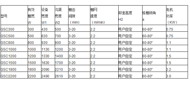四、格柵除污機(jī)主要技術(shù)參數(shù)